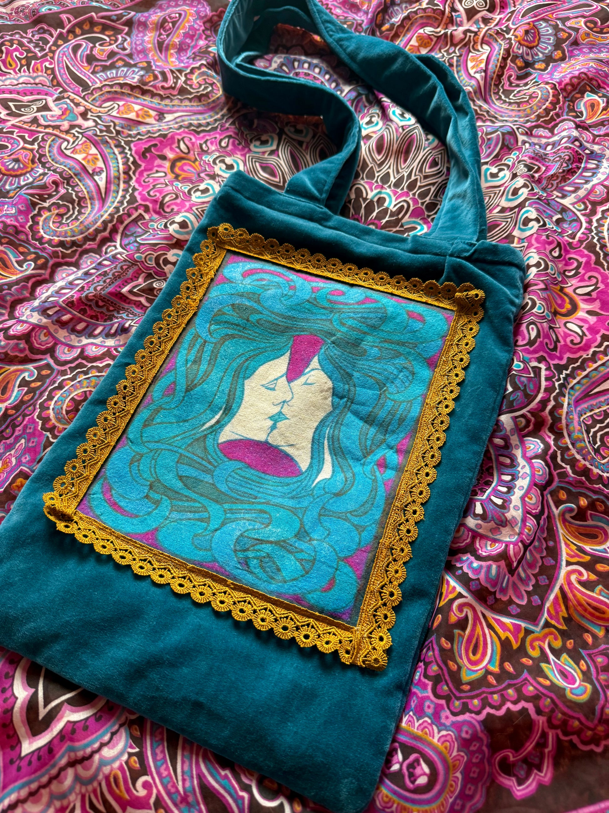 Sample 'Juniper', our Art-Nouveau inspired velvet tote bag.